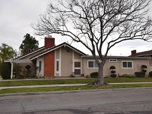 Located on a corner lot and situated on quiet cul-de-sac is a charming, single story pool home with 3 bedrooms, 2 bathrooms and an open floor plan. This home has been nicely updated, vinyl wood floors, light neutral paint, dual pane windows, Kitchen has white cabinets with neutral stone counter tops and stainless steel appliances (refrigerator, microwave, stove and dishwasher). Spacious living room with vaulted ceiling and dining area, separate family room with vaulted ceiling, custom shutters on windows and slider to access backyard-covered patio area. The primary bedroom has en-suite bathroom with walk-in shower. The backyard has a beautiful pool(gated) and a covered seating area great for entertaining. Two car attached garage with direct access and washer/dryer hookups. Conveniently close to schools, shops, restaurants and Wilson Park for walks, Disneyland for fun and the 5 and 91 freeways! Owner pays for gardener and pool service. Small dog may be permitted, depending on breed, additional pet deposit of $500. Property is tenant occupied, you must complete an application before viewing, property will be shown only to qualified applicants by appointment.