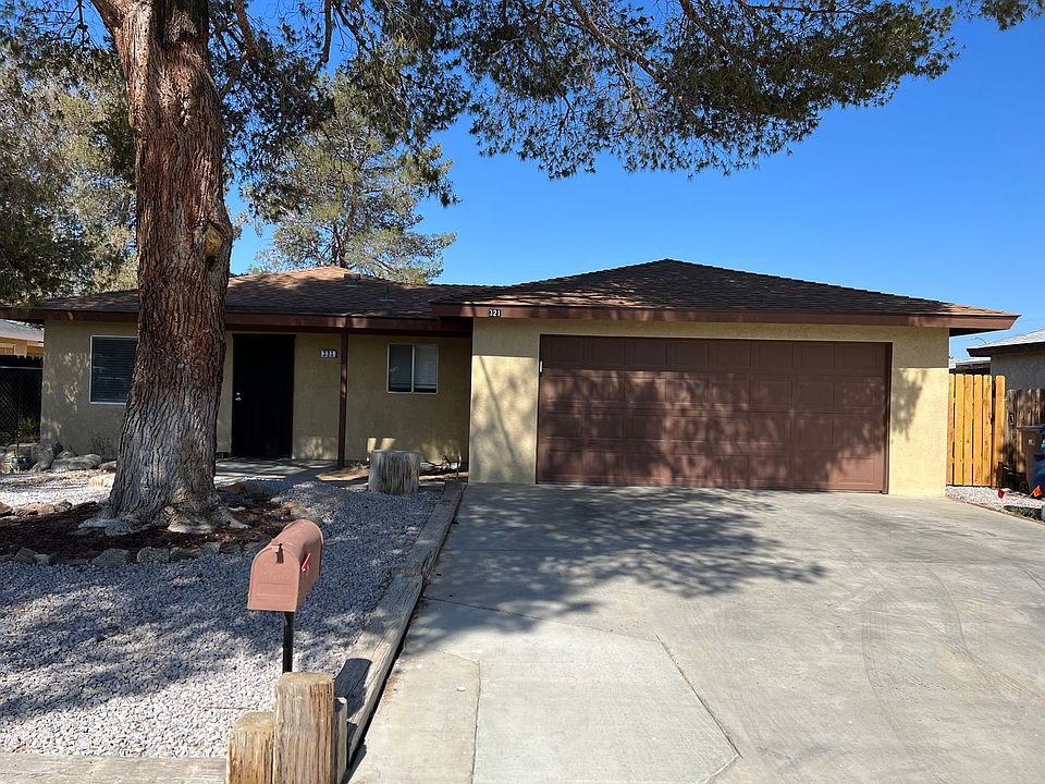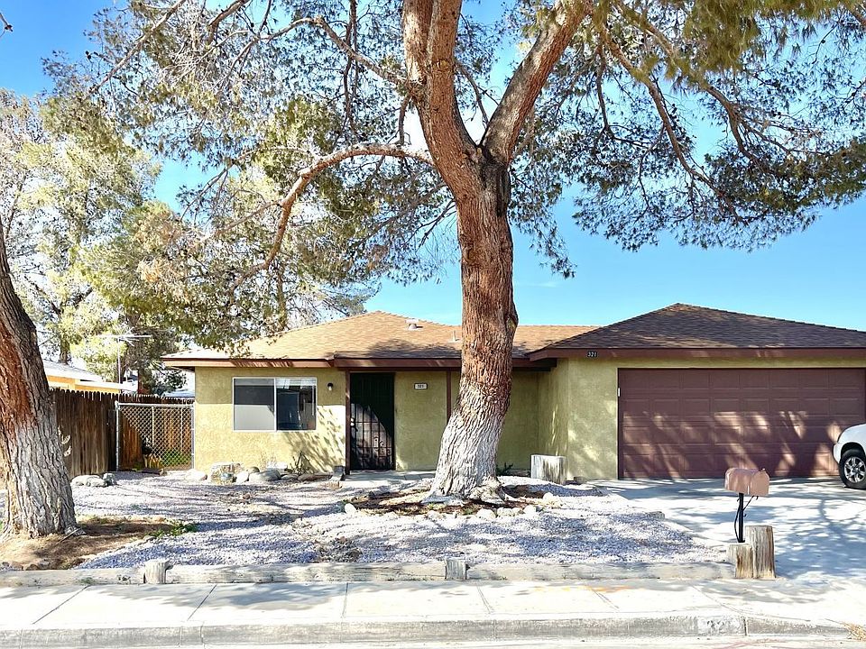 -Large fenced backyard space with large pine trees for shade. Also has raised planter boxes for planting fruit & vegetables.