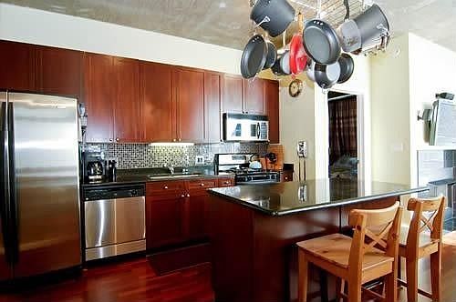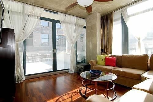 Awesome split floor plan, 2BR/2BTH corner unit @ Lofthaus. 2 Full BRMS, No half walls! Hardwood floors, granite/SS kit, soaring concrete ceilings. Marble master bath w/dual vanity, separate shower and whirlpool. Huge prof. organized master walk-in, plus additional storage. 2 blocks to brand new park/dog park. Over 650 sq. ft. Private Terrace, an entertainers dream! Asmts include heat, air, water and gas. pkg 25k addt