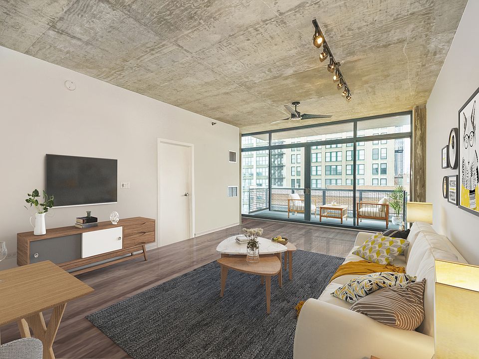 Introducing this spacious & modern end unit in booming West Loop Lofthaus Lofts. Dark espresso floors throughout with open floor plan and solid concrete between floors. Updated marble kitchen with oversized island and space for dining table. Extended living room pours out into oversized balcony with city views through a wall of 10' floor-to-ceiling windows. Both bedrooms are spacious and fully enclosed including master suite w floor-to-ceiling professionally organized walk-in closet. Steps to Park, EL, Loop & Restaurant Row. Easy access to 90/94. Rentals permitted. Deeded Garage Parking $30k. Seller offering paint credit.