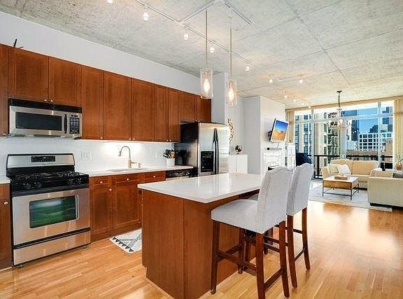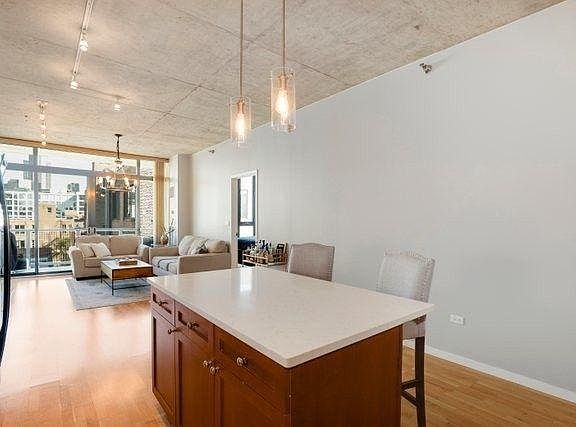 Incredibly light-filled condo with amazing city east-facing views (view of Willis Tower), Heart of West Loop with 91 Walk Score (90 Rider Score). 5 min walk to Blue Line, 10 min walk to Green Line. Immediate access to both I-90 and I-290 highways. Walkable to UIC and Rush Hospital. Huge PRIVATE BALCONY overlooking the city, gas grill allowed. Brand new IN-UNIT LAUNDRY replaced in 2020 and GAS OVEN RANGE replaced in 2021. Sun-drenched master bedroom (fits king-sized furniture) features Elfa Closet System (His & Hers), Double Bowl vanity with quartz countertops and soft-close drawers. Brand new premium carpet installed in 2018. Freshly coated walls and trim. Prem quartz kitchen countertops and standalone kitchen island with tile subway backsplash. H/W floors and custom lighting. 10ft ceilings. Marble gas fireplace. RENT INCLUDES HEATED GARAGE PARKING, STORAGE LOCKER, GAS, WATER, TRASH, AND SNOW REMOVAL PETS ALLOWED - $300 One-Time Pet Fee per pet (max limit of 2 pets) $300 refundable move in/out fee plus $100 non-refundable move in/out fee 12+ month terms, option to rent furnished or partially furnished for additional fee