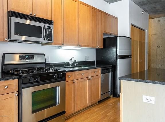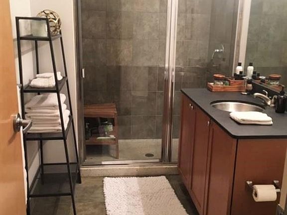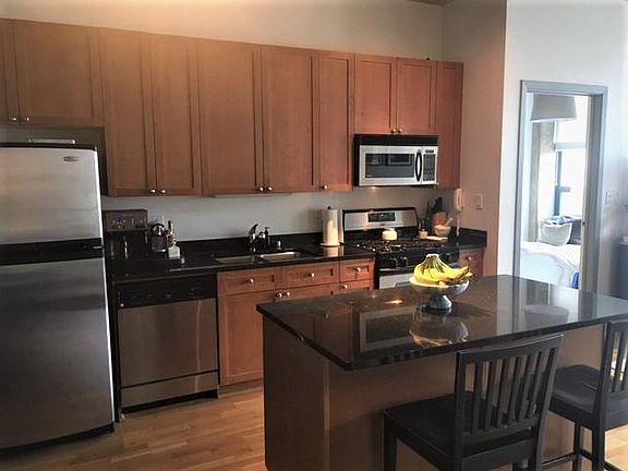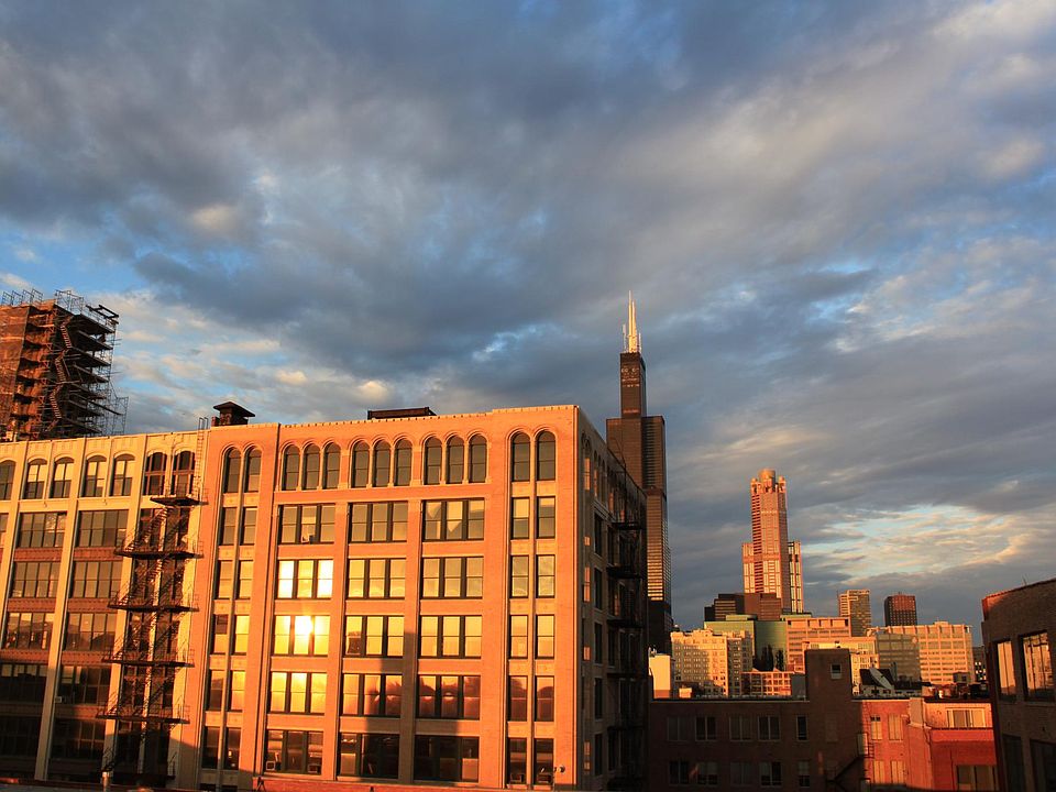 Bright, quiet, east facing, modern loft with skyline views and garage space. a block from blue line (UIC Halsted) and bartelme park Great floor plan & open layout 11' concrete ceilings and floor- to-ceiling windows. Hardwood floors and 2 full baths. Kitchen w/ granite counter tops, stainless steel appliances and 42" cabinets. Private master bedroom suite, w/ large closets and master bath w/ deep soaking tub and separate shower. -balcony -in unit washer/dryer -heated garage space -storage unit -11 ft ceilings - center island -granite counters -stainless steel appliances -water and gas included -2004 construction Gas and water included