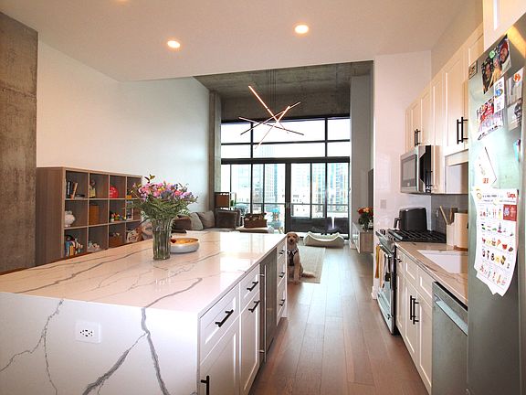 AVAILABLE for LEASE | Sleek Design & Smart Touches throughout this AIRY, ROOMY & BRIGHT PENTHOUSE LEVEL SOFT-LOFT in HOTT WEST LOOP! | This Owner's Personal Custom Design will make you want to call this Concrete Loft your next home! | Soaring 14ft High Ceilings | 7.5in Wide "Dogwood" Engineered Wood Plank Flooring covering over 1000 sqft | Floor-to-Ceiling Windows | Complete Jenn-Air Appliance Set with a Beverage Cooler in this Shaker-Style Cabinetry / Quartz Countertop Kitchen | Custom 4 Seater Quartz Countertop Island with Soft-Close Drawers | KING-SIZED Primary Bedroom with En Suite Bathroom & Glass Sleek Black Stackable LG Laundry | ENCLOSED 2nd Bedroom | TWO Specially Designed 60in Pix Stix Suspension Lighting by Lightology & controlled by Lutron | Motorized Hunter Douglas Shades | Spacious Private Balcony | Custom Designed Floating Vanity Bathrooms | Pet Friendly & Financially Healthy Association | Heat, Air Conditioning, Water, & Parking is included in the Monthly Rent | Indoor Heated Deeded Parking Space is INCLUDED | EVERYTHING you want to patronize & enjoy this Neighborhood is within a minutes walk - Restaurants along Bustling Madison Ave and Fulton Market are an 8 - 24 Minute Walk; a 4 Minute Walk to the Mary Bartelme Park (& Dog Park); an 8 - 11 Minute Walk to either Mariano's or Whole Foods Market | Hop onto any Expressway within a 4 Minute Drive | Video Available Upon Request | $3,800/mo for a Lease Ending on March 31st, 2026 AND $3,900/mo for a 12 Month Lease; Both have an Option to Renew.