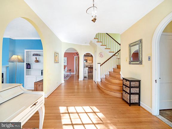 Step into this classic colonial on Sterling Road, with beautiful mature trees in the front yard and an iron arch leading to the entry. Stepping inside you will be met with the same original charm and gorgeous arched openings throughout the spacious first floor. On this floor, you will find a large eat-in kitchen with a Sub-Zero refrigerator and tons of cabinet space. This kitchen also features an area that could serve as a dedicated breakfast nook or a space for a second dining table. Walking through the next arch, you will find a formal dining room with original built-ins on either side of a door leading to the yard with open paned glass giving the dining room tons of natural light. This level also features a large living room with the same charming built-ins and a wood-burning fireplace. Upstairs you will find four spacious bedrooms towards the front of the house, all with large closets. On this floor, you will find a linen closet that features a built-in folding table and drawer. Towards the back of the house, you will find the fifth bedroom, now used for a massage room, which could be an in-law or au pair suite. Finally, this home also features a finished basement, perfect to entertain the whole family, and an attached 2 car garage for covered parking and additional storage space. Walk to Elkins Park train station, Open Book bookstore, Goat House Creamery, and Creekside Market & Tap.
