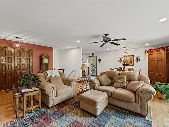 Nestled on a quiet cul-de-sac just south of the newly revitalized downtown in Olathe, this beautiful Mid-Century Modern feel home is located on a wonderfully treed lot. Recently renovated, this open floor plan features bamboo wood flooring and new Anderson windows throughout. Three bedrooms on the main level include a Primary suite with walk-in shower, double vanity, and quartz countertops. The kitchen boasts custom Hickory cabinetry, Quartz countertops, and all stainless appliances. Outdoor spaces include a gorgeous backyard with concrete patio and established landscaping plus a deck off the primary bedroom. Cozy family room, laundry room, and half bath located in the walk-out basement, along with a large unfinished storage area with work bench. New exterior paint and 50 year IP roof and gutters.