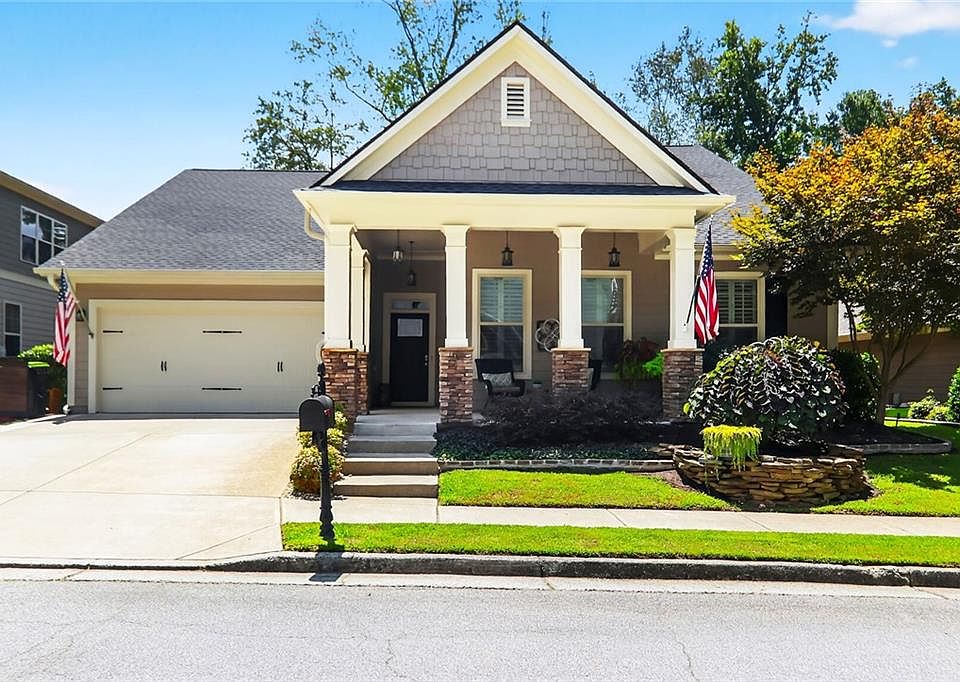 Welcome to 321 Sassafras Crossing, a beautifully maintained master-on-main home located in the quiet and desirable Seasons Preserve at Hickory Flat. Built in 2013 by David Weekley Homes with high-quality 2x6 construction and soaring 10’ ceilings, this home offers stepless entry and exceptional one-level living just a few homes from a peaceful cul-de-sac. A charming covered rocking chair front porch sets the tone for the inviting interior, which includes a spacious primary suite on the main level with its own separate HVAC zone, along with two additional bedrooms and a full bathroom. The thoughtful floor plan features a separate living room, large family room, open breakfast area, and a generously sized kitchen with a large center island and newer stainless steel appliances. A custom dry bar with built-in wine cooler adds both function and style, while the adjacent mudroom, laundry room, and under-stairs storage provide everyday convenience. Upstairs, a large flex room with two walk-in closets and a full bathroom offers tremendous versatility and could easily serve as a fourth bedroom with the simple addition of a door at the top of the stairs. There’s also walk-in attic access with even more storage space. Outdoor living is truly special here, with a screened-in back porch, an additional covered patio beneath a cedar pavilion, a built-in grill, a stone firepit area, and lush landscaping supported by an in-ground irrigation system. Recent upgrades include a new roof (installed February 2023), newer kitchen appliances, a new water heater (2023), custom plantation shutters throughout, a separate HVAC zone for the master bedroom and upstairs, and more. This home combines thoughtful design, quality craftsmanship, and modern updates in a well-maintained, move-in ready package, perfectly situated in a quiet, established community with easy access to nearby shopping and dining. Conveniently located just over 4 miles from Northside Cherokee Hospital and within a 15 mile drive to Downtown Canton, Holly Springs, Woodstock, Alpharetta, Roswell, and the historic Crabapple district