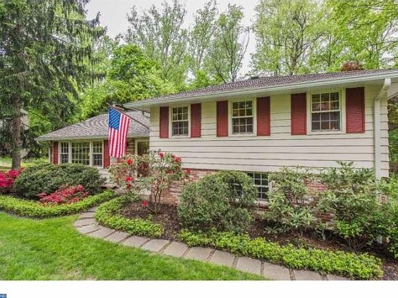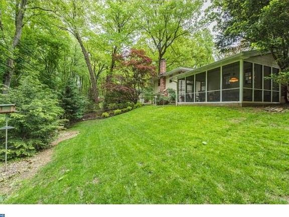 Welcome to this well maintained home situated on a beautiful wooded lot. The whole house features state of the art Pella Windows. Enter into the sun filled living room with large picture windows. The lovely eat-in kitchen features stainless steel appliances, skylight, stately brick fireplace and atrium door to the screened in porch that overlooks the serene backyard. The lower level boasts a spacious family room perfect for additional living space with brick fireplace and atrium door. Retreat to the master suite with large closet, upgraded bath with granite vanity top, tile floors and seamless glass shower. Two additional bedrooms and a full bath with tile floors complete the second floor.There are also hardwood floors under the living room, stairs, hallway and master bedroom. This home is in a prime location with close proximity to downtown Wayne and minutes to train station, rte 30, 202 and PA turnpike. You won't be disappointed!