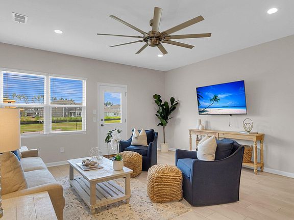 **Charming Single-Story Home with Pond Views in Sanctuary Cove, Cane Bay Plantation**Welcome to Sanctuary Cove in Cane Bay Plantation! This lovely single-story home offers pond views and an array of desirable features. From the moment you arrive, you'll be captivated by the charming exterior and inviting ambiance.As you step inside, the attractive laminate flooring and bright, open floor plan will immediately catch your eye. The seamless flow between the living, dining, and kitchen areas creates a functional and aesthetically pleasing space. The living room is perfect for relaxing and unwinding, with direct access to the patio where you can enjoy serene pond views from your backyard.The spacious dining area is ideal for gatherings, while the kitchen is a chef's dream, boasting beautiful cabinetry, sleek countertops, modern appliances, and a convenient pantry. A point-of-use water heater ensures instant hot water, and you have the flexibility to choose between a gas or electric range. The primary bedroom, overlooking the backyard, offers a spacious retreat complete with a walk-in closet and an en suite bath. The bathroom features a dual sink vanity and a spacious step-in shower with an upgraded detachable shower head and hand-held spray nozzle. Three additional bedrooms, each with ample closet space, provide plenty of room for family or guests. One bedroom includes an en suite bath, while an additional full bathroom and a laundry room complete the interior. This home is equipped with modern smart home technology, including a smart thermostat and Alexa-compatible switches throughout. The garage features a 220V outlet for charging your electric vehicle and a deep sink for all your projects. Living in Cane Bay Plantation means enjoying exceptional amenities, such as a park, pool, and scenic trails for walking and jogging. This beautiful home is an opportunity you don't want to miss. Schedule a tour today and make Sanctuary Cove your new home!