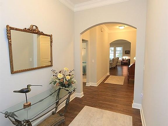 Beautiful ranch, single level living with soaring 10' ceilings! Open floor plan with extensive moldings,built in bookcases,paneled dinning area,gourmet kitchen,spacious laundry room,walk in pantry.Large master w/2 WIC &tray ceiling.Expanded screened in back porch,rocking chair front porch,finished garage,2"faux wood blinds AND all appliances convey! Walk to great schools,grocery store,community pool and childrens playground. Easy access to I540 and US1 plus the bonus of HOA doing all lawn maintance!