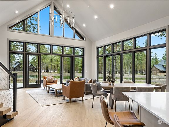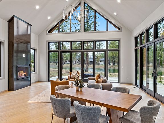 SCANDINAVIAN STUNNER at Tumble Creek. If you like light & bright, this home is for you! Gorgeous windows surround the home...take in the sunshine and natural light from every angle. Views of Paintbrush Lakes, waterfalls, & Cascade Mountains add to the peaceful serenity of this home. Primary on main floor w/slider out to a patio. Or, make the upper bedroom w/deck the main primary...your choice, both amazing options. The finishes set this home apart w/wool carpet, metal roof, glass walls, open tread metal staircase, cabinets, fixtures, Thermador appliances & new motorized shades in both primary's & room darkening in all bedrooms. Enjoy summer at Tumble Creek! Purchase comes with a Tumble Creek Honolulu Membership ($15k value.)