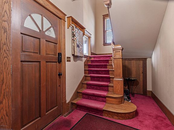 Embrace the charm of this historic 2 story that offers classic details paired with modern amenities, updates. Hard to find in town property on a 1+ acre lot with trees and 8 stall garage! Inside you'll find a foyer with an open, carpeted staircase & coat closet. The living room has a gas fireplace/custom mantle & adjoining formal dining room. Bonus spacious second living room with hardwood floors and half bathroom. The updated kitchen boasts granite counters, tile backsplash, tile floor, pantry cabinet, ss appliances, and built-in hutch with wine bar (&/or coffee station). The eat in dining room is light & bright with windows offering views of the backyard and access to the patio plus a second gas fireplace with custom mantle! Great breezeway leading to the basement with storage and access to side patio. Upper level offers 1st bedroom with vanity/sink & hardwood floors, 2nd bedroom with hardwood floors, full bathroom with jacuzzi tub and walk in shower and 3rd primary bedroom, including a sitting room area, hardwood floors and private balcony. The basement is partially finished with large family room, 4th bedroom (with egress), laundry room (washer & dryer included) and generous storage or room for hobbies. If the garage is what you're after, you will love the 6 STALL finished & insulated garage with heat pump (heat/cool) and pull down storage. A second 2 stall garage for additional storage. The possibilities are endless on this partially fenced 1+ acre yard with mature trees, patios and pergola. Privacy and space all in the heart of Kindred! Make this your new place to call home. So much to see and appreciate, come take a look in person!
