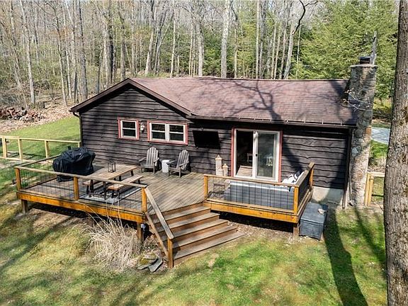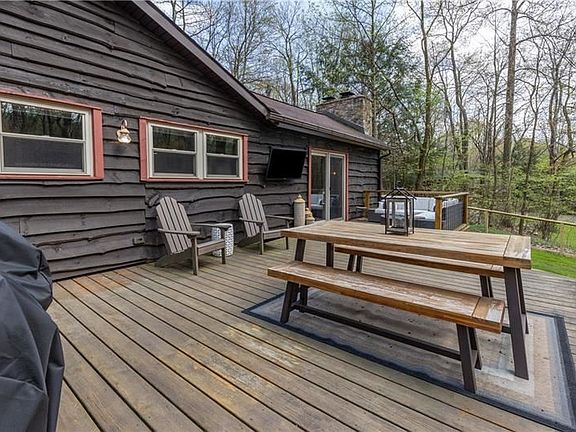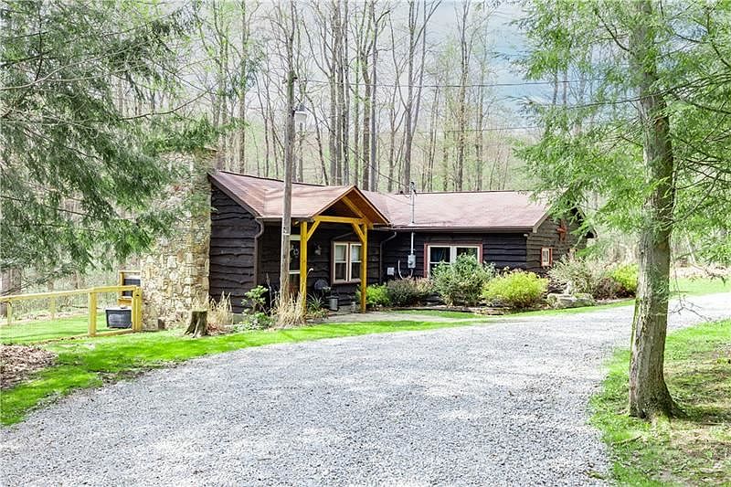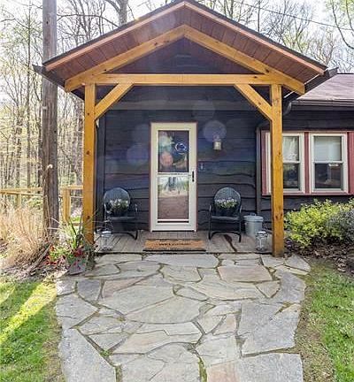 COZY 2 BEDROOM 1 BATH UPDATED CABIN TUCKED IN THE WOODS OF THE LAUREL HIGHLANDS. MINUTES TO HIDDEN VALLEY AND SEVEN SPRINGS. VERY PRIVATE 1 ACRE PARCEL WITH A QUIET STREAM IN THE BACK. GORGEOUS STONE, WOOD BURNING FIREPLACE IN THE LIVING ROOM OPENS TO KITCHEN WITH INCREDIBLE GRANITE COUNTER TOPS AND ALL APPLIANCES INCLUDED. STONE ACCENTED PENINSULA SEATING AND OPEN PASS THROUGH TO LIVING ROOM PROVIDES ADDITIONAL BAR SEATING. UPDATED BATH WITH CERAMIC TILE WALK IN SHOWER AND STONE FLOORING. FIRST FLOOR LAUNDRY (W/D INCUDED) FULL DECK ON THE BACK OVERLOOKING THE FULLY FENCED YARD WITH STONE FIRE PIT TO RELAX AND ENTERTAIN IN A SECLUDED NATURAL ENVIRONMENT. ALSO INCLUDED IS A LARGE SHED TO STORE ALL YOUR TOYS AND A WOOD SHED TO KEEP YOUR WOOD STACKED AND DRY AWAY FROM THE HOUSE. NEW TANKLESS WATER HEATER
