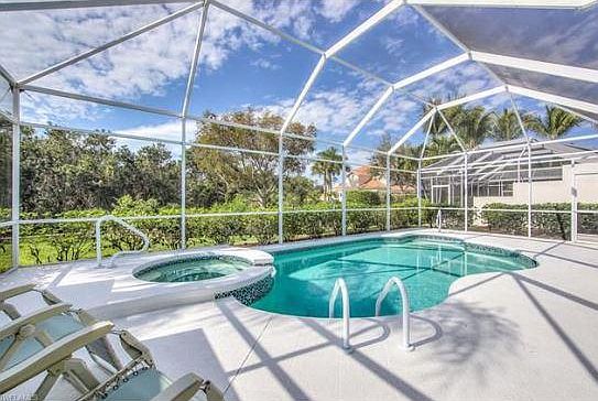 Your home away from home is available 10/01/2024. Best value in Naples! Beautiful home in Eden On The Bay, 4 bedroom 3 FULL bath home with private pool and spa overlooking the preserve! Just updated with brand new kitchen counters, tile backsplash, hardware, modern flooring in the bedrooms, and sleek white marble vanities in all the baths. New fixtures and brand new energy efficient lighting. Kitchen boasts breakfast bar and opens to the great room and dining room with sliders leading to the lanai. Master Bedroom has DUAL walk-in closets, bath with dual sinks and separate tub and shower, and private lanai access! Fourth bedroom is light and bright with french doors, would make a great office or den. Enjoy detail work like crown molding, columns upon entry, and tray ceilings. Roll down shutters are convenient and a big plus . Great central location with quick access to Naples, Bonita Springs, and Fort Myers, easy access to SWFL international airport, shopping, dining and FUN! Only minutes to the beautiful white sand beaches you can call home! Master Bedroom (Queen Bed) Bath w/Extra Large walk-in Shower, double sinks & extra Large walk-in Closet. 2nd Bedroom (Queen), 2nd Bath w/Tub/Shower combo, 3rd Bedroom (Queen Bed) & ensuite Bath w/Shower. Den/Office w/desk for those working remotely and a Murphy bed to be used for guests. Tenant pays all utilities