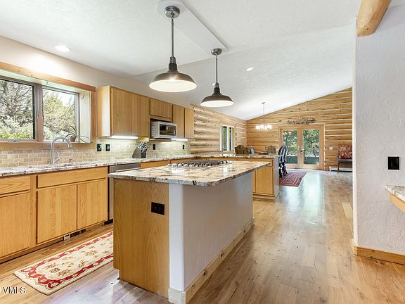 Large flat lot of 1.45 acres, with great views of surrounding mountains, Gypsum Creek Valley and Hardscrabble. Fenced in large yards, and a large flat parking area for ample parking and garage/workshop to be built, which seller has preliminary plans for. Seller has remodeled all bathrooms, new countertops in Kitchen, installed hickory wood flooring in main level living, dining and kitchen area, re-carpeted home and repainted interior and stained decks. 2 great decks for BBQ's and entertaining and enjoying the outdoors. Includes storage sheds, chicken coop, livestock pen, & root cellar. The exterior logs have all been newly stained and chinking redone throughout.