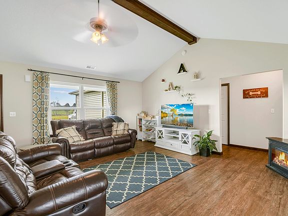 This adorable ranch home is located in the desirable Sycamore Creek subdivision. When you step inside this 3 bedroom, 2 bathroom home, you’ll see the large living room is complete with vinyl plank flooring and a cathedral ceiling. The kitchen sits just on the other side of the living room and offers an eat-in bar, a ceramic tile backsplash and a walk-in pantry. There’s plenty of space in the kitchen to host family and friends around your dining room table, as well. This home offers a split floor plan, with the master en suite situated on one side of the home and two bedrooms and an additional bathroom on the other. The spacious master bedroom offers a walk-in closet, as well as access to the master bathroom and laundry room. Two bedrooms and one bathroom can be found on the other side of the home. There are several deep closets for your storage needs, and the attached 2-car garage also has additional space for storage. This home has only had one owner and has been well cared for and well maintained.