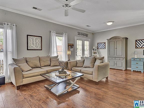 SUPER-CUTE ONE LEVEL IN EAGLE POINT!! This all-brick home is located in the popular Eagle Point community in much sought-after Oak Mountain school district! You will love this one! Walk in to beautiful hardwoods found in foyer, den, & kitchen. Kitchen is awesome w/granite countertops, stainless appliances, built-in microwave, separate pantry, & beautiful transoms above the doors! Kitchen also has nice eating area & nifty pass-thru to den! Den has nice marble-surround gas fireplace, wonderful built-ins on either side of fireplace, & French door leading to patio in fenced backyard! The master bedroom is amazing w/tray ceilings & great triple window that lets in so much natural light! Master bath has garden tub, walk-in shower, separate vanities. 2 walk-in closets are also in master bath! 2nd & 3rd bedrooms are split from master & have walk-in closets! 2-car main level garage is SO handy w/no steps into house! You will love convenience of living here! Come and see it today!!!