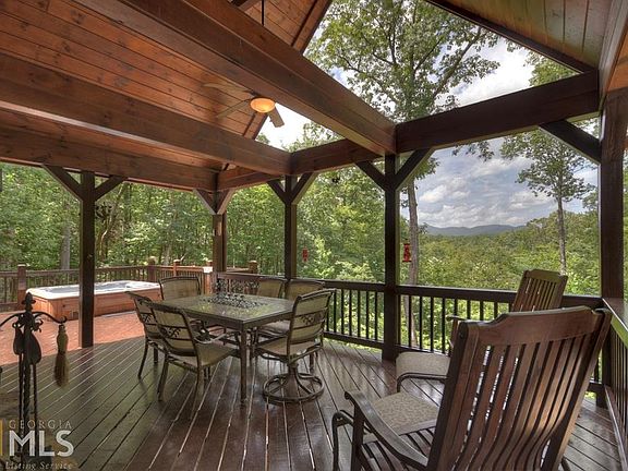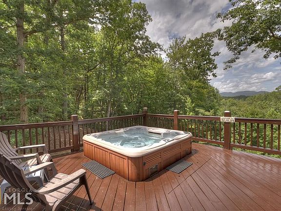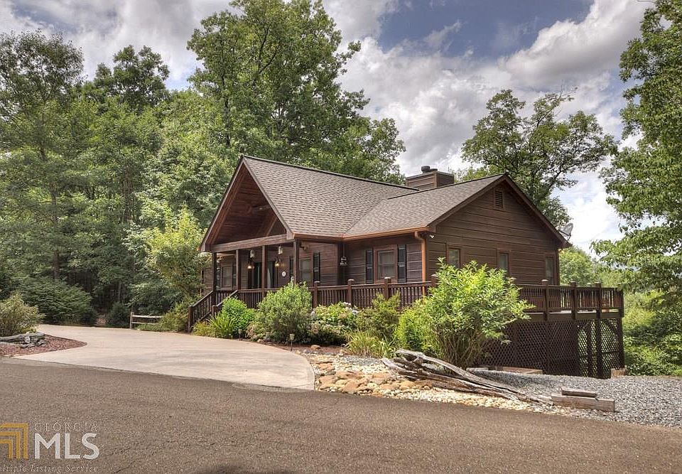 Check out this 4BR/3BA log sided cabin on 3 acres w/year round MOUNTAIN VIEW! Cabin features a floor-to-ceiling stone fireplace w/gas logs in great room and doors opening to large covered porch w/outdoor fireplace (woodburning) & sunken hot tub. Great cabin for entertaining! All wood interior, fully equipped kitchen, breakfast bar & pantry. 2 master suites on main floor, plus laundry. Finished terrace level w/2 large bedrooms & full bath, recreation/family room and bar area. Firepit plus a hiking trail to nearby creek. Located in rustic mountain community w/paved rd, w/clubhouse & pool exclusively for property owners. This cabin is an ideal getaway from the hustle & bustle of the city life. Investors - will make a very successful vacation rental.