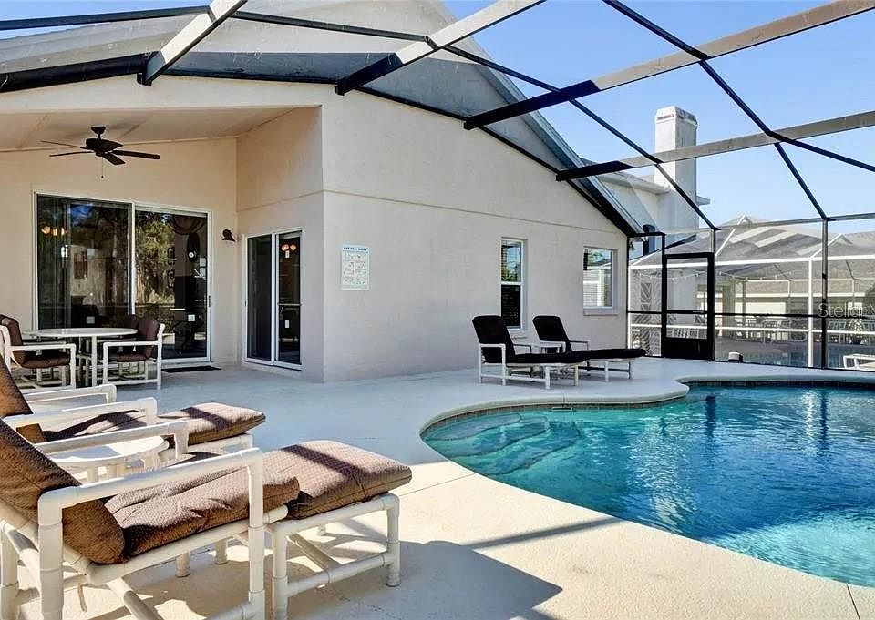 Pool House Available for Rent Partially Furnished.Welcome to your new home! This wonderful 4-bedroom, 2-bathroom single-story pool house is located in the exclusive golf community of Highlands Reserve. Partially furnished , this beautiful Wynnewood model boasts over 2000 sq. feet of comfortable living space on one level. Featuring two spacious living areas and a large kitchen with ample counter space, this home is perfect for families or as a vacation retreat. The inviting family room overlooks the sunny pool deck, providing a great space for relaxation and entertainment. The master bedroom is generously sized, complete with a spacious closet and a spa-like bathroom featuring his and hers vanities, a garden soaking tub, and a standalone shower. The additional three bedrooms are also well-sized and share the main bathroom. Step outside to the expansive pool deck with a shady lanai, perfect for alfresco dining. There's plenty of space for loungers, and the sparkling blue pool is incredibly inviting. Enjoy lovely views of the golf course from the pool deck, with a hedge providing that extra bit of privacy. Located close to shops, restaurants, and the famous Florida theme parks, Highlands Reserve is an exclusive golf community. Don't miss out on this rare opportunity to rent a single-story golf frontage home. First month of rent and security deposit of one month required. Rent includes pool maintenance.