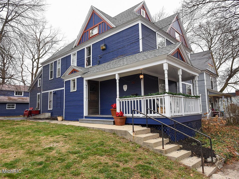 This Heritage Hill Gem includes home and investment property and is situated on two city lots! Main home includes 4 bedrooms, 2 full baths and over 2,800 square feet. The vintage charm of the beautiful original woodwork, pocket doors, floors, and ceiling beams are perfectly combined with the modern updates of the new expansive kitchen, custom crafted library, and two updated bathrooms. Laundry and large storage pantry on main floor for added convenience. The renovated 3rd floor has a separate keypad entry and is a profitable AirBNB that can be used for short or long term rental. This 600 square foot studio sleeps 6 and includes a living area, kitchenette, and full bath. Off-street parking and detached garage for extra storage. Walking distance Medical Mile and downtown Grand Rapids!