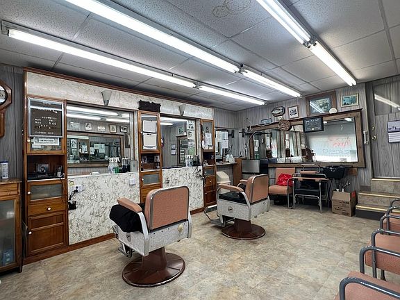 Tony's Barbershop. This property is zoned residential but if the continued use is for a barbershop, the buyer would be grandfathered in for continued use. This two bedroom home features shop area which can be turned into a living room or family room, full kitchen and bath with a full basement. Property is being sold "As-is"