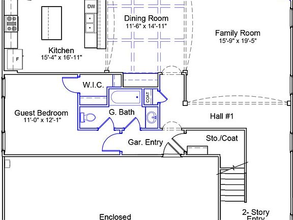 This Warwick plan is a two-story home with five bedrooms and three full baths. It features a grand two-story entrance, formal dining room, guest suite downstairs and an added sunroom. The kitchen with bar top seating, island, and prep space is open to the dining room and specious great room. The upstairs primary bedroom includes a private bath and dual closets. Three secondary bedrooms, all with walk-in closets, are also located upstairs along with the specious loft and laundry room.