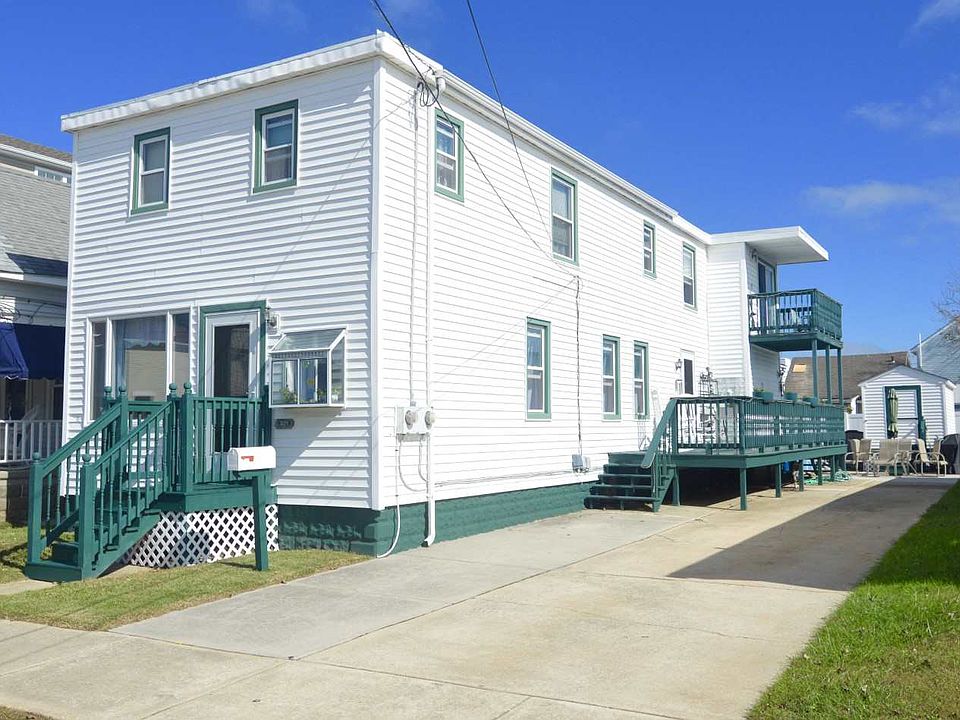 This 2 story, 3 bedroom / 2.1 bath charmer is full of personality. Located only 1.5 blocks from the bay and 6.5 blocks from the beach, makes this home perfect for someone looking to live on the island for an amazing price! You can enter from the front or side where there is a large deck. The 1st floor has a large open area including a living space with a gas fireplace and a dining area. Off the dining room is a conveniently located half bath. In addition, there is an eat in kitchen and a laundry/utility room that is home to a year old Navien Condensing Combi Boiler #NCB 240 which takes care of heating and on demand hot water and runs on natural gas. There is a quaint area when you enter through the front door giving the home a truly welcoming and homey feel. Upstairs there is a hallway half bath and 2 guest bedrooms, one with an extended office and walk in closet. To the back is a large, roomy master suite with ample closet space, vanity area and a bathroom with a whirlpool tub. You can enjoy your morning coffee and paper on the private master deck and enjoy the fresh air. Looking south, you can see the canal and to the north, you can see a glimpse of the bay through the surrounding homes. The large driveway, depending on the type of vehicles, can hold up to 6 cars! The backyard is great for entertaining and swimming in the large above ground pool. Furthermore, the backyard shed is ideal for storage or a workshop. ! Take advantage of its locality; You can enjoy the quiet dead end street with a beach bay almost out your front door, go fishing/crabbing off the close bulkhead, walk 3 blocks to recreation, including but not limited to, a park and tennis courts or if you prefer head on down only 17 blocks to the entertainment district! As you can see this home has many great attributes and will not last long!