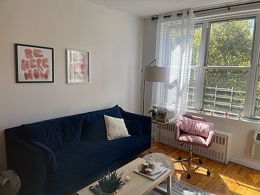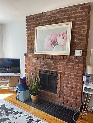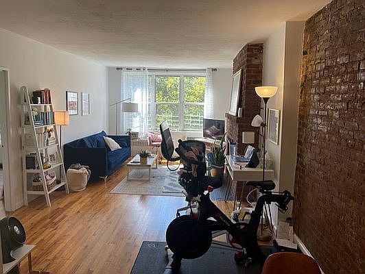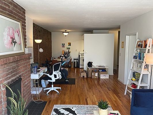 Tree lined block. Well kept town house. Elevator&Laundry in the Bldg. Full time super. Apt on the 5 th floor. 15 % broker fee of the yearly rent. Cats only no dogs. No Video Tours Offered. Huge real 1 br. Large living room. Southern exposer. Sunny unit. WB Fire place. Exposed brick. Sep full kitchen. Dining alcove. Large bedroom. Bring your queen size bed, Large closets. Full bathroom.