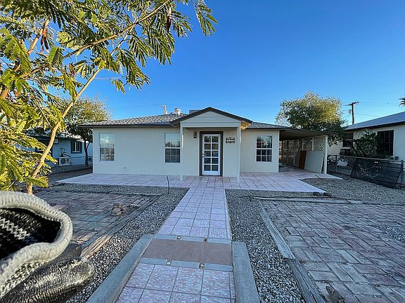 This 4 bedroom-2 bath home has been freshly painted. There is ceramic tile throughout. New light fixtures, new stove, new dishwasher have been installed. The side patio has a new roof and has been painted. The back patio is covered, painted, and has a chandelier in the center. The garage is wallboarded and could easily be turned into a casita. This home is ready for furniture and occupancy.