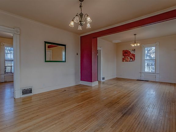 Makes A Statement! 1800's Italianate architectural style with wide projecting cornices w/decorative heavy wood brackets perched on a hill. 1800+ SF, 3 bdrm, 2 bath home w/loads of tall windows, narrow board hardwood floors main level & upper level. LR & DR framed w/crown molding, 9' ceilings. Main floor family rm, office w/closet. Upper level-3 spacious bdrms w/oversized closets, bonus rm, walk-in storage rm, second stairway. 2 car garage plus addl 12x20 1 car at rear of lot. Great yard. .34 acre. Close to schools, playground, shops. Home needs TLC but great opportunity. Seeing is Believing!