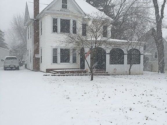 Here is a unique opportunity to live in the charming historic district of Farmington. This beautiful two story home was built in 1900 and retains much of its original character. The home is situated on Columbia Street, is within close walking distance to the downtown shopping and restaurant area, and is the perfect place to view a holiday parade with front row seating, or enjoy a relaxing evening on the spacious front patio after a busy day. The property includes a fantastic screened in wrap-a-round front patio, a detached 20x20 garage, and a large fenced in back yard. The front door enters into a beautiful spacious foyer, features include a parlor sitting area with gas fireplace, a turned staircase, built in under the stair case coat closet, and hardwood floors throughout the first level. When you enter the great room through the original wood pocket doors you will see ten foot ceilings, a wood burning fireplace, the large front bay windows, classic ceiling crown molding, window trim and French doors leading to the powder room and kitchen. The large updated kitchen features plenty of counter and cabinet space, ten foot ceilings, a center island with oven, hanging pot rack, breakfast counter, computer/office space, and a generous eat in kitchen area. Go through the back door of the kitchen and you enter a gorgeous light filled dining room featuring, five windows, and access to the front patio through a second set of French doors, perfect for entertaining. The second floor features three large bedrooms, the master bedroom, a landing area, washer and dryer area, and two full updated bathrooms. The home also features a large third floor attic with its own staircase. The high pitch cross gable roof provides ample attic space and ceiling height that could be finished for additional living space. Other notable features include off street parking for multiple cars on the concrete driveway, partial basement with outside access, separate climate controls for the first and second floor, a private back patio, and a side yard. This is a rare opportunity to own a beautiful turn of the century home that maintains authentic historic charm and includes all the modern amenities.