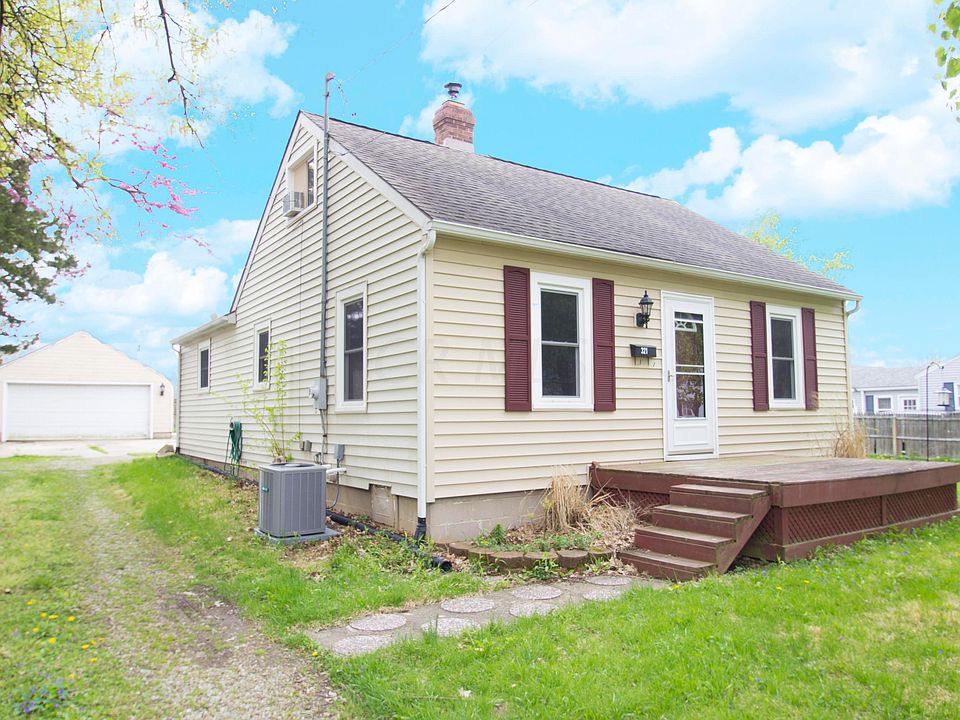 This darling 3 bedroom home is a must see! There is a first floor bedroom, and then two bedrooms upstairs. There is new tile in the bathroom and laundry room, as well as new carpet throughout! . It has a huge yard and 2 car detached garage as well. Brand new HVAC system too! Come check it out!