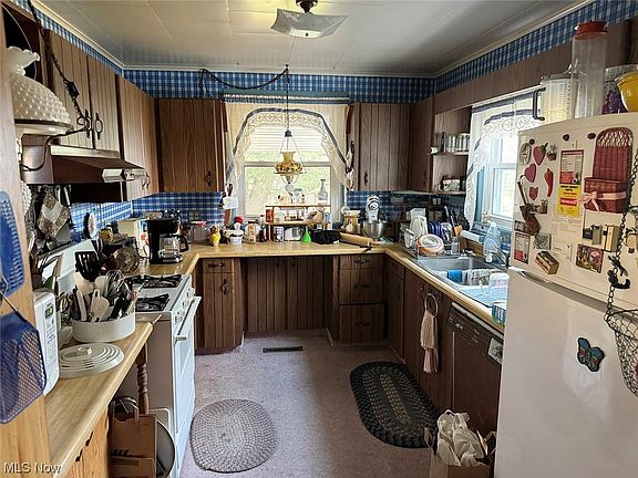 Spacious two-story century home built in 1900 with 1,908 sqft. The main level features a kitchen, dining room, living room with 2 fireplaces, and half bath. Take the ornate curved staircase to the second level with four nice-sized bedrooms and a full bath. Full basement with laundry, full bath, gas FA furnace, central A/C, breaker electric, and walk-out entrance. Updates include windows, furnace, and A/C. Carport for parking and sheds for storage. Located right in the heart of town. Home has loads of character, needs a little TLC, and is ready for your primping and sprucing.