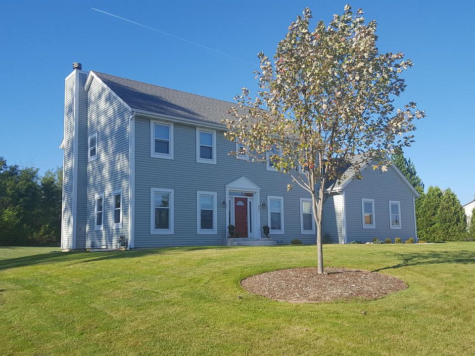 Spacious 6 bedroom Colonial in Lake Country's best kept secret - The Pines Subdivision! Enjoy scenic views from the huge kitchen and eat-in dinette to a secluded backyard where wildlife frequently come to visit. Cozy up to the natural fireplace during the winter or take a short walk to the private beach in the summer! Many updates including new landscaping, concrete stoop and walkway. Convenient main floor laundry, large master bedroom with walk in closet and plenty of room for everyone! Appliances and Home Warranty included. KM schools and near the Glacial Drumlin bike trail.