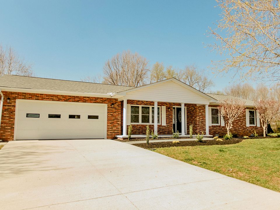 Now offering this beautiful brick ranch with an open floor plan, huge detached garage, completely remodeled and more! This home is situated on two lots totaling .86 acres with a shed, carport and 25'x30' detached brick garage with electric. The home features three bedrooms and two bathrooms, formal living room, huge great room and kitchen, plus a nice sunroom! It has new flooring, fresh paint, new stainless appliances, marble counter tops and vanities, newer windows, HVAC & shingles in 2022. This home is move in ready so don't delay, call today!