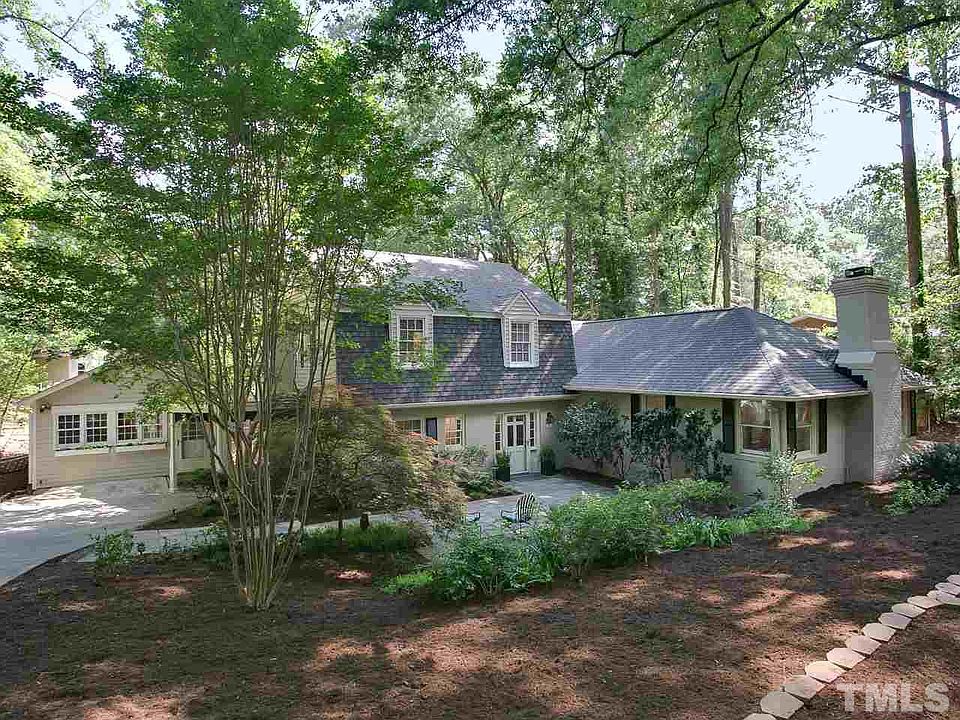 Beautifully sited on a quiet, wooded lot just steps away from Umstead park+Bolin Creek trail, this quintessential Chapel Hill home will make you smile! Classic blk/white tile entry welcomes you to bright open living spaces that flow seamlessly. Kitchen w/prof gas range,SS appliances, new subway tile, new lighting opens to spectacular family room w/ vaulted ceiling, skylights+wall of windows overlooking private backyard. Numerous updates include int+ext paint,LED lighting, hardwoods,LVP flooring, roof+more