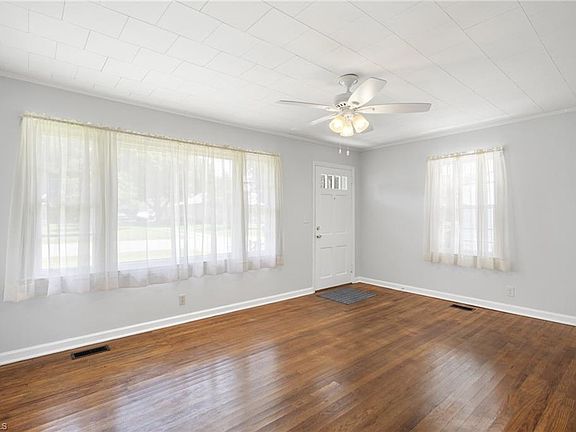 Pristine 2 bedroom, 1 Bath home in excellent condition in Burlington. Spacious family room has beautiful hardwood flooring, ceiling fan and large front windows for lots of natural light. The eat-in kitchen has nice tile backsplash, electric range and refrigerator, good cabinet space, vinyl flooring and access to laundry room. The hallway has LVP flooring and leads to the main bath with solid surface vanity top and tub/shower combo. The primary bedroom and the 2nd bedroom both have hardwood flooring and ceiling fans. All rooms have blinds except the living room. There is a door in the laundry room that open onto the covered rear porch and is just steps away from the double carport with enclosed sides and a concrete pad. The driveway is gravel with a concrete pad in front of the carport as well. There is an 16ft x 12ft workshop in the rear yard with concrete floors and is wired with electricity. And there is lots of room for children to play, pets and entertaining.