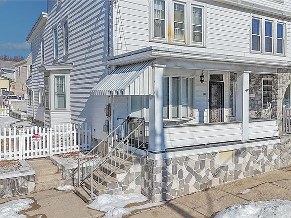 Expansive twin sits in a lovely neighborhood and offers a large canvas on which to create your dream home! The covered front porch opens to a foyer, with two stained glass transom windows, then a hall opening into the homes dining room with a gently divided living room to the front with its large bow window. To the rear, a sprawling eat-in kitchen with 2025-installed LVP flooring offers abundant cabinetry including a pantry cabinet with a moving spice rack to maximize its storage potential! Upstairs, three generous bedrooms, each featuring ample or multiple closets are served by the full hall bath. The sun-flooded rear bed and bath also offer 2025-installed LVP! The third floor offers a generous storage room, another large closet included, and a large fourth bedroom to the front, a gentle alcove offers lovely natural light! The basement begins with a large utility and laundry room, with a lovely half-bath to the rear. To the front, a 100sf storage room! The rear covered, concrete patio offers a convenient storage room and overlooks the home’s fenced yard. Two tiers of rear yard flow into a large side yard, marvelous garden possibilities! Additionally, potential for a rear parking pad with some thoughtful reconfiguring! A short trip to Tamaqua’s rapidly growing down, the home also sits in the Tamaqua School District, where graduates qualify for the two-year LCCC Scholarship Program!
