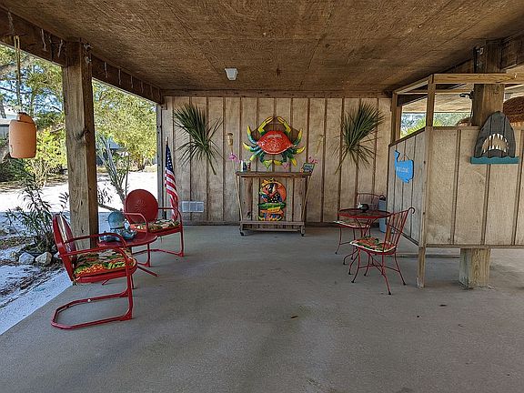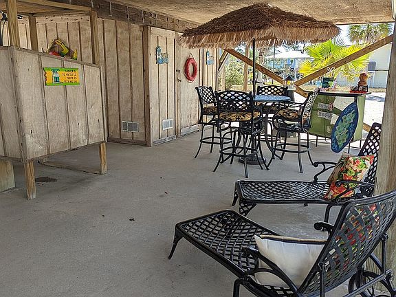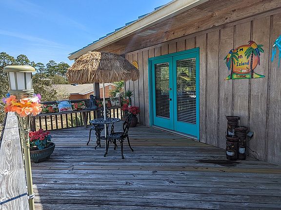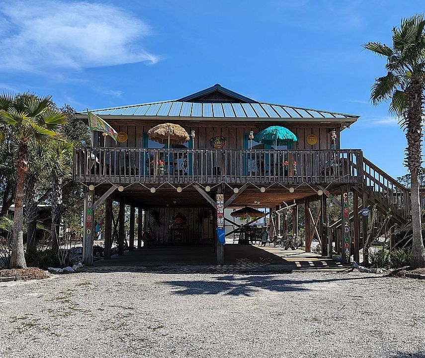 Own a piece of paradise with this island getaway. This is a 3 bedroom 2 and 3/4 bath, cedar home with a beautiful Hawaiian blue metal roof. It has a large front deck with views of the sun setting over the little lagoon. It has an open floor concept for the living, dining, and kitchen areas; great for entertaining. On the ground floor there is a 10X14 1/2 utility room with a half bath and lots of extra shelving for storage. Enjoy the luxury of an enclosed hot/cold outdoor shower; beach clean up made easy! It has a oversized 12,000 sq ft sandy lot , beautifully landscaped with lots of palm trees, flower beds, and a sprinkler system. This home provides ample parking with enough space for 4 vehicles underneath and extra parking for guests. Prime real estate location, within walking distance to restaurants, souvenir shops, the hangout, and the beautiful sugar white sandy beaches of Gulf Shores. Well maintained home in excellent condition. COME TAKE A LOOK AT PARADISE!!!