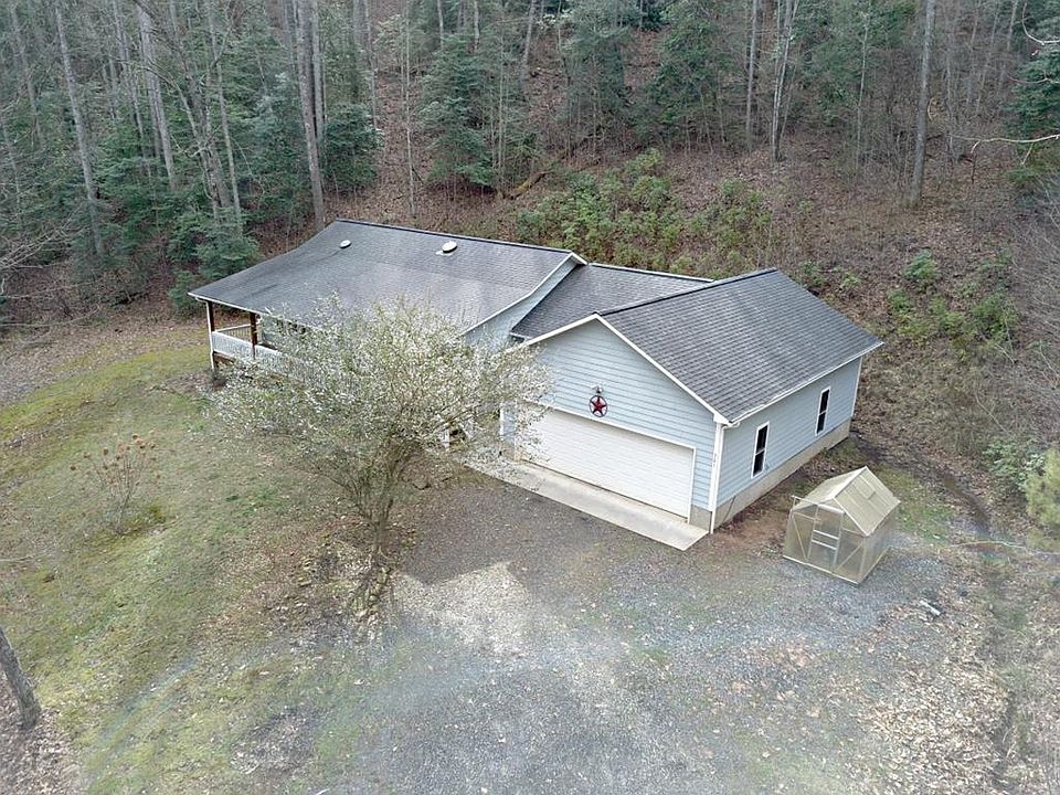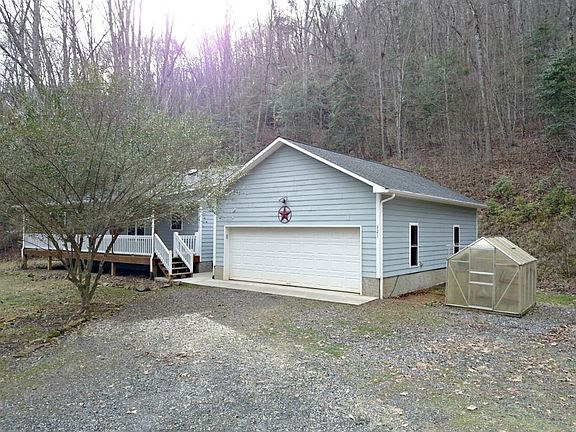 Peace and quite best describes the amenities of this one level living three bedroom, two bath with large open great room of cathedral ceilings, gas log unit & hardwood floors, nice workspace kitchen, master bedroom en-suite bathroom with jacuzzi tub, separate shower and a large walk in closet. Oversized two car garage with plenty of storage, covered porch the length of the house and open back deck. HVAC. Nice yard with greenhouse. Located on the backside of Webster township in the Frady Cove area making it convenient to WCU, SCC and Sylva Downtown. Priced to sell.