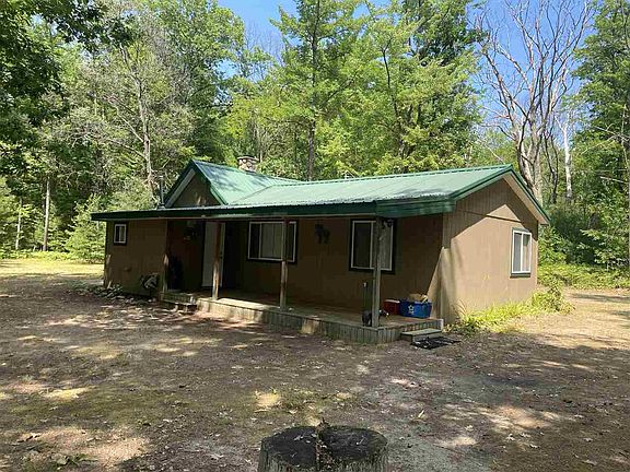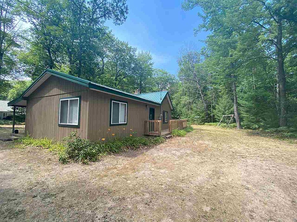 clean and well kept, cozy Houghton Lake cabin on a large cleared lot tucked away on serene dead end road just a short walk from the Lake and Markey township park! Don't let this 770 sq foot cabin fool you the layout compliments for lots of tucked away storage with decent size bedroom closets, attic storage space, and a nice size utility room! wood doors & trim, knotty pine in living area, eat in kitchen island/counter. and did I mention the large metal shed with double barn doors and concrete flooring perfect for those up north toys! large living area and separate dining space too! don't overlook that covered porch and that wrap around deck! metal roof installed 2013! This cabin and property is really something! This one won't last long! Call today for your personal showing!