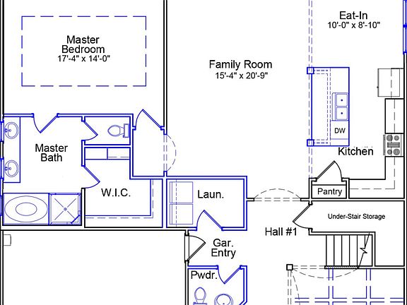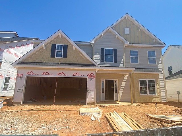 The Victor is a two-story home with five bedrooms and three and one-half bathrooms. This home features a formal dining room and an open family room, kitchen and eat-in area. An organizational space/laundry room is located off the garage. The primary bedroom is located on the main floor and features a private bath with double sinks, separate garden tub and walk-in shower, and large walk-in closet. Four secondary bedrooms, two full bathrooms, and a large bonus room are located upstairs.