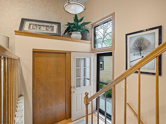 Fargo's best kept secret! Conveniently located bilevel condo with large greenspace and tennis court in the backyard! This cozy property welcomes you with a landscaped courtyard and steel siding. Inside, the finishings are the highest quality including a remodeled primary suite bathroom with a skylight, newer vanity/linen cabinet and tiled shower with glass doors. Beautiful transom windows (some with stained glass!) throughout the upper level let in sunlight. Gas fireplace. The lower level features 2 more bedrooms, a full bathroom and a finished laundry room with access to the finished garage with epoxied floor. Wood deck in the backyard overlooks a large greenspace and a community owned tennis court. $175/mo HOA covers building insurance, lawn care and snow removal.