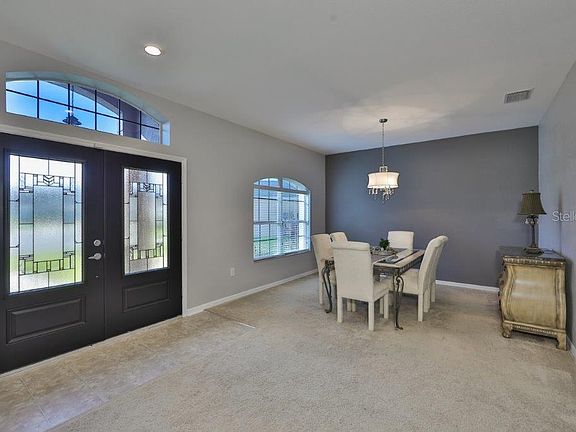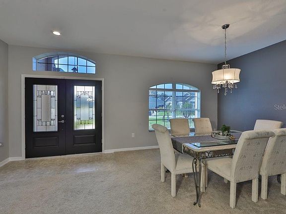 Spectacular home located on a pie shaped lot featuring amazing views of the pond! Offering 4 bedrooms, 3 full baths, and air conditioned 3 car garage! Fall in love w/ the open layout, step through the double doors into the formal living & dining room, opening into the large family room and kitchen. Kitchen features espresso cabinetry w/ crown molding, large breakfast bar, beautiful granite countertops, stainless steel appliances, gas range (also hooked up for electric, if you would like to convert it), pantry, breakfast nook and more! Master bedroom overlooks the water; offers a large bathroom featuring a walk-in shower, garden tub, dual sinks and walk-in closet. Relax in your covered and screen lanai w/ upgraded tile or step out to grill in your new wood deck, and enjoy your afternoon watching the wildlife on the water! All new interior fresh paint! Other features include all LED lighting, AC UV lighting, all new landscaping, privacy fence on the sides, rain gutters, built-in shelving in the laundry room, multi filters in all rooms, tinted windows for better energy efficiency, and more! The garage has been upgraded significantly, the seller added additional insulation, wood decking for storage use above the garage, and 3 solar charge attic fans. This home has so many awesome features! Call me to schedule your private showing!