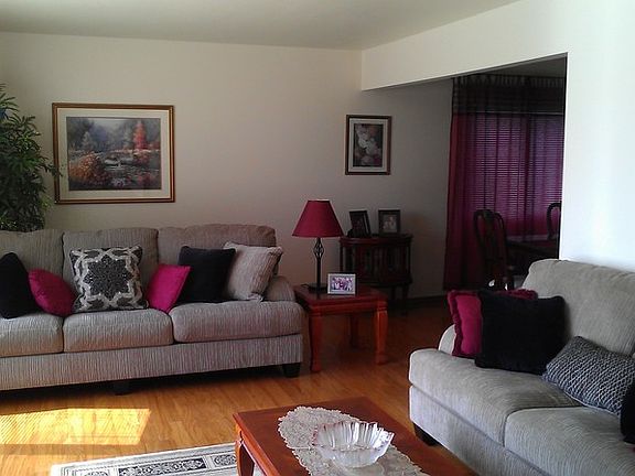 Formal living & dining room, family room w/gas fireplace, slider to back covered patio. Eat in kitchen with lots of cabinet space. Upgraded laminate tile flooring, newer light fixtures. Inside laundry, partially finished basement w/ cabinets for storage. 2 car attached garage w/key pad garage opener and remote. Large covered back yard patio, 12x12 shed, slab for basketball hoop and parking Rec vehicles etc. Fully fenced, lots of room for swing set, trampoline, play house, garden, archery etc. Mature shade trees, a pond water feature for a relaxing backyard experience.