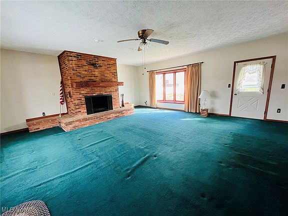 - Description: Fireplace with dual fans. Large brick mantle.,Flooring: Carpet