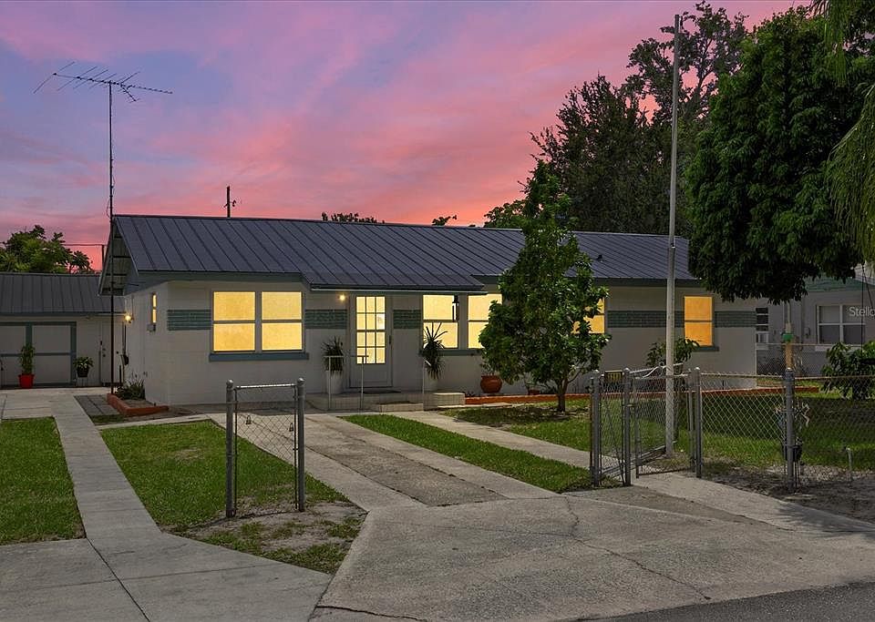 The property is located in Winter Haven, in the Northwest area of Polk County. This is just an amazing value-do not even think about it. Check this 3 bedroom, 1 bathroom home ready to move into with 1,205 sq.ft. living plus a guess house with 2 bedrooms 1 bathroom upgraded kitchen and Metal Roof, fenced yard, inside utility, No HOA. Schedule your showing to this property before is gone