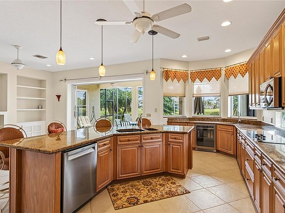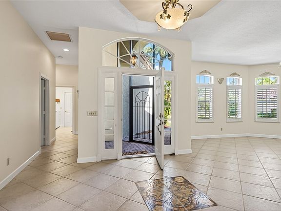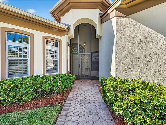 One-owner home in sought-after golf community with NEW 2025 roof by My Florida Roofing & NEW 2025 whole-house Generac generator. CBS construction, split plan, 3 beds + family room & living room. Enjoy serene 13th-hole views from screened lanai with hot tub. Open kitchen with bar, built-ins & surround sound. Optional golf/club membership with pool, tennis, dining. Side-entry garage on .39-acre home-site in low-density neighborhood. (Sizes Approx)