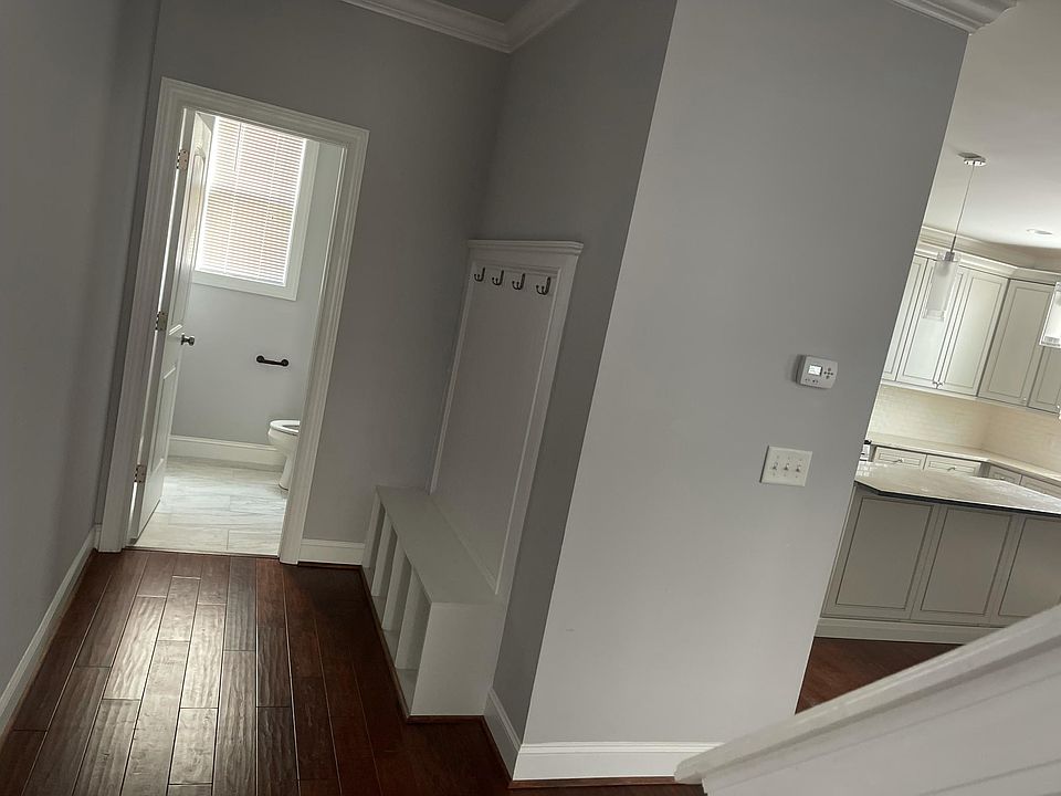 Beautiful and just 3yr old, 2 car garage, stone front, back fenced, open kitchen with granite CT , SS appliances, island, plenty of natural lighting, upgraded bathrooms, screened porch overlooking the private fenced back yard, good school district, close to 540 and shopping. New Refrigerator, washer and dryer. Tenant pays all utility bills and owner is responsible for HOA.