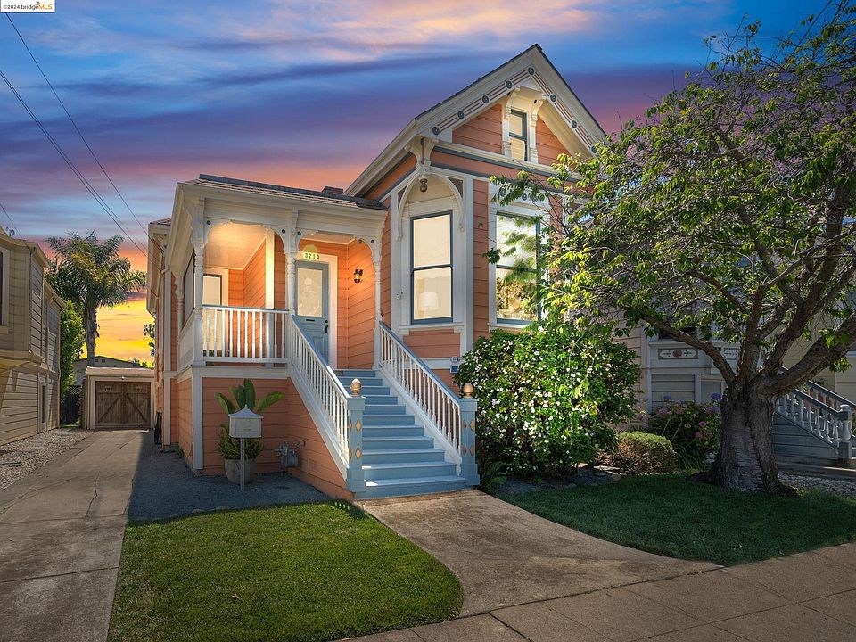 Welcome to 3210 Encinal Avenue, a stunning Victorian cottage nestled in a snug row of Victorians in Alameda’s East End. A unique blend of historic charm and contemporary amenities, this 2bd/1.5 bath 1168 sqft home also has a full basement, and lovely light filled garage/workshop. Step inside to discover a seamless fusion of old-world character and modern convenience. Carved wooden door frames and cast iron coal burning fireplace facade live compatibly with stainless steel kitchen appliances and an oversize full bath. The large windows and high ceilings add a feeling of elegance and space. Host large family gatherings in the formal dining room and living room and more casual gatherings on the private rear deck with it’s diminutive sunken hot tub. Enclosed back yard is perfect for your furry friends, the fruit trees are a foodies delight. Open Sat 1-3 and Sun 2-4:30 Prepare to FALL IN LOVE!