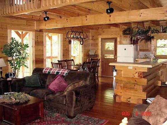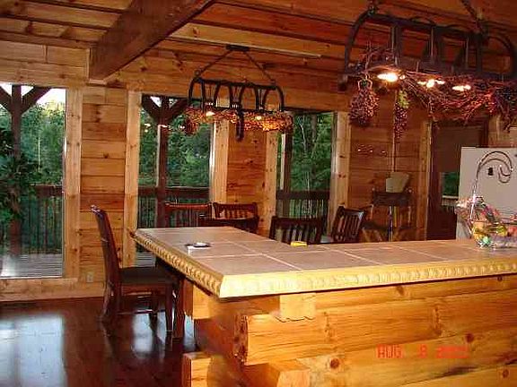 "MA BEAR'S" Great views of Mt. Le Conte with no man made structures in sight. Private yet only 2.4 miles from the parkway in Pigeon Forge. 4BD/3BA**2- King & 2 Queen Beds** Jacuzie tub & Hot Tub**Wood burning Fireplace**3 levels of deck**Completely furnished**Dishwasher, flat-top cook stove, frig. w/ice, washer & dryer** VERY PRIVATE